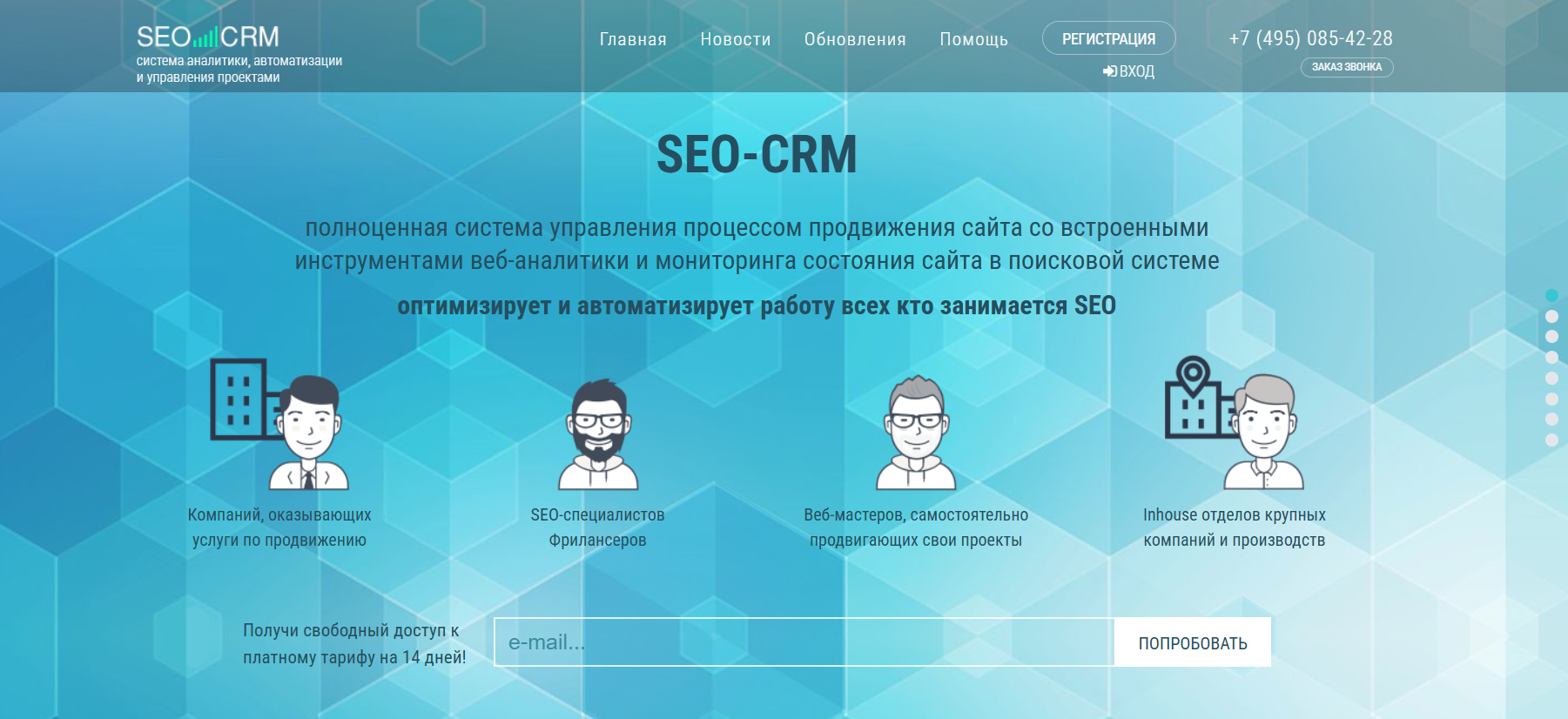 Наша платформа предназначена как для специализированных компаний, так и для фрилансеров, ставлящих своей целью совершенствование работы оптимизатора.