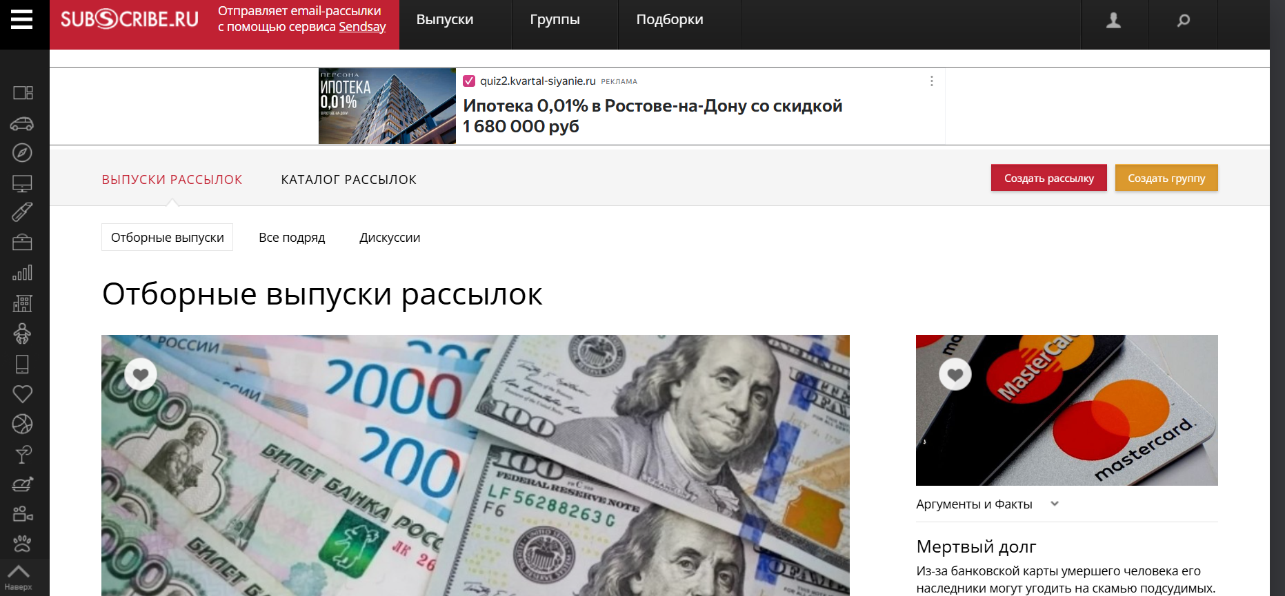 Subscribe.ru - универсальный российский сервис информационных ресурсов, запущенный в 1999 году. Наш сервис предоставляет возможность осуществлять эффективные e-mail рассылки, достигая широкой аудитории в один клик.